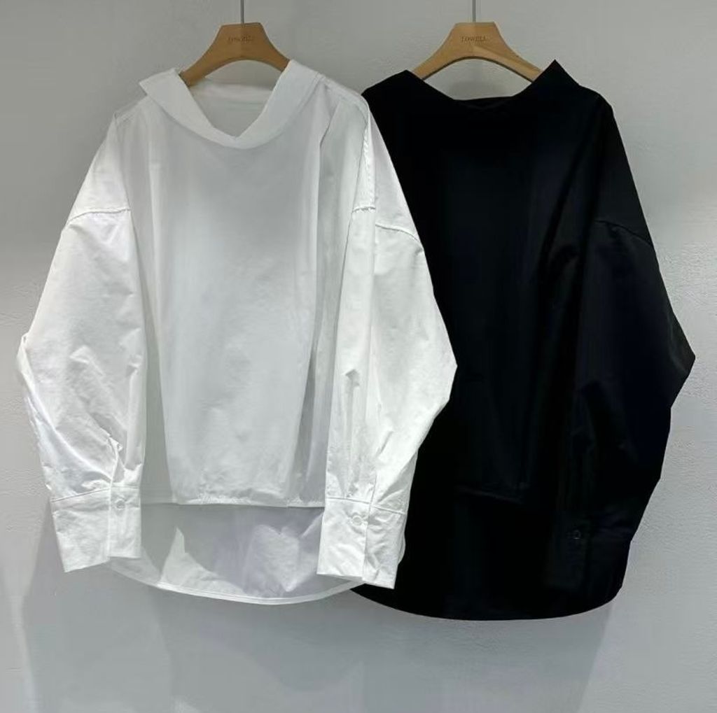 預購▕ 韓國秋冬服飾連線-超時髦設計領黑白兩色上衣
