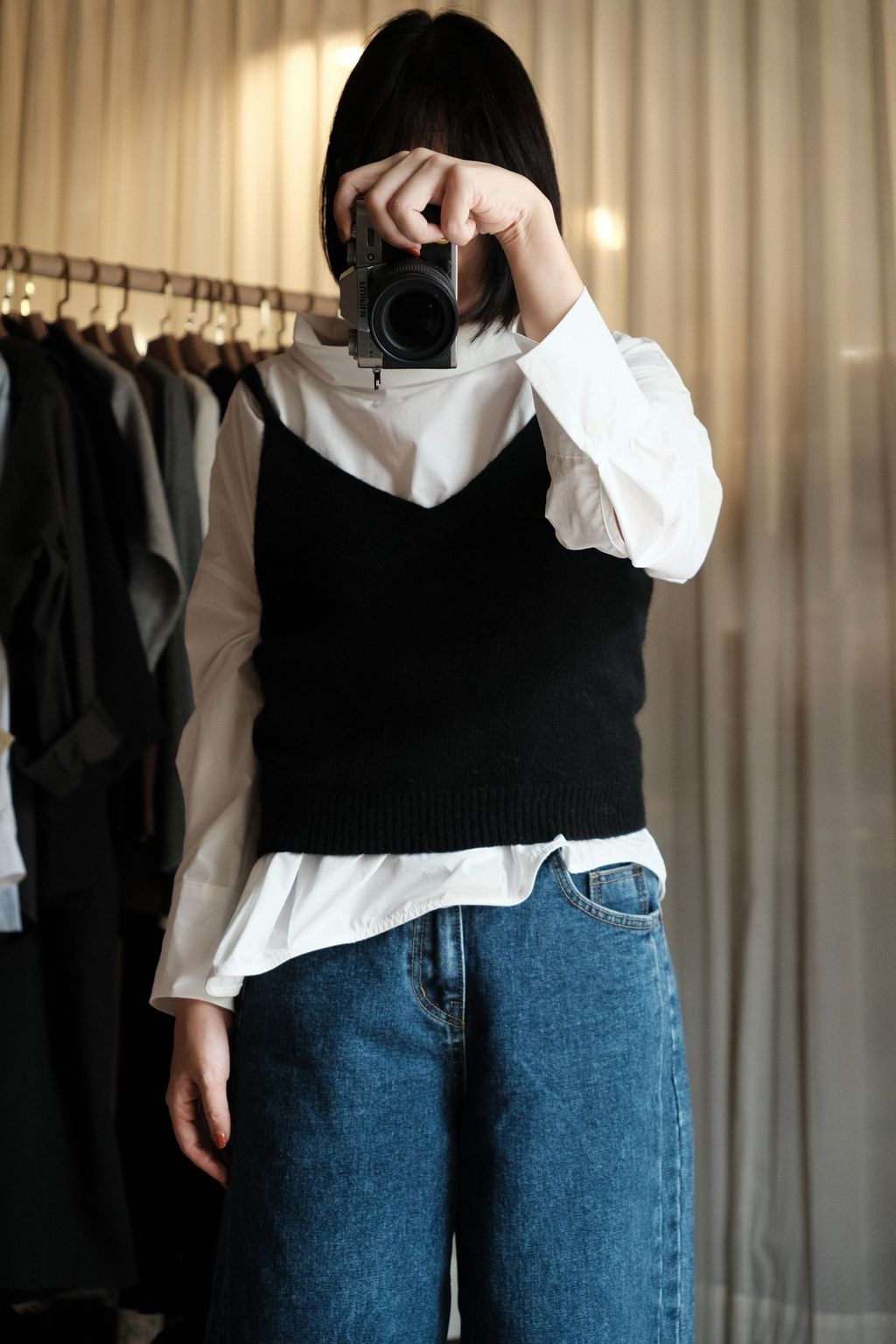 可以拿來搭西裝外套或針織背心,馬上很有造型感♡