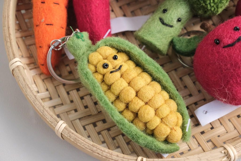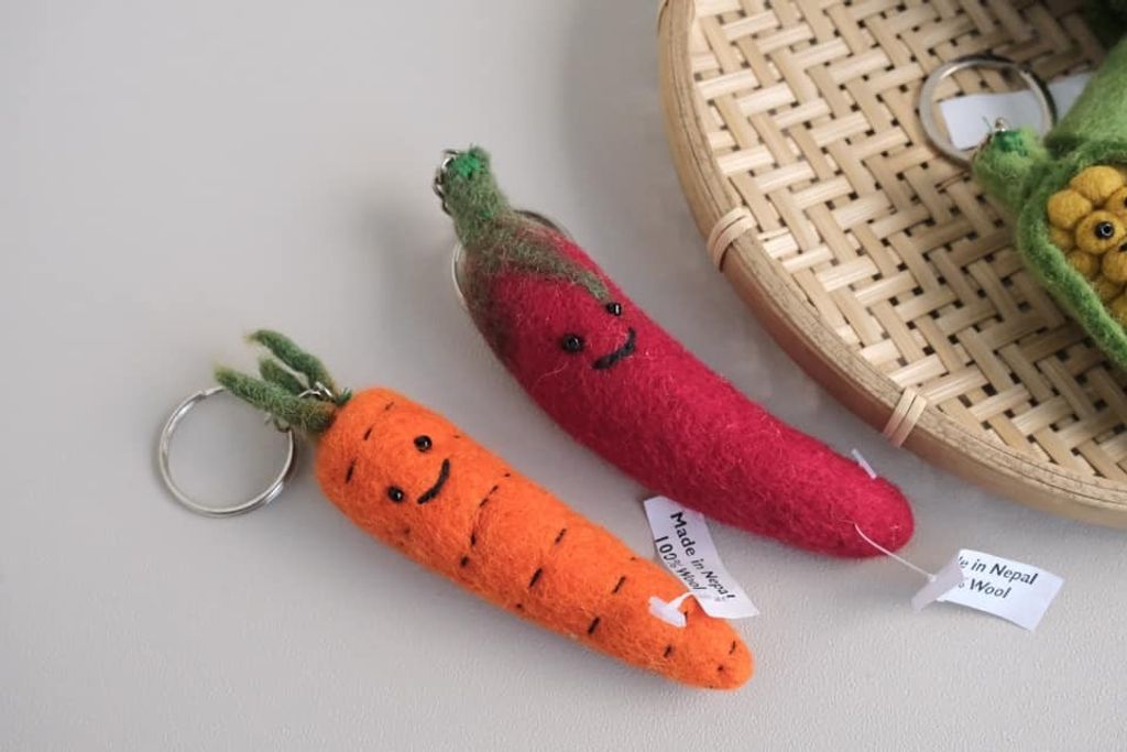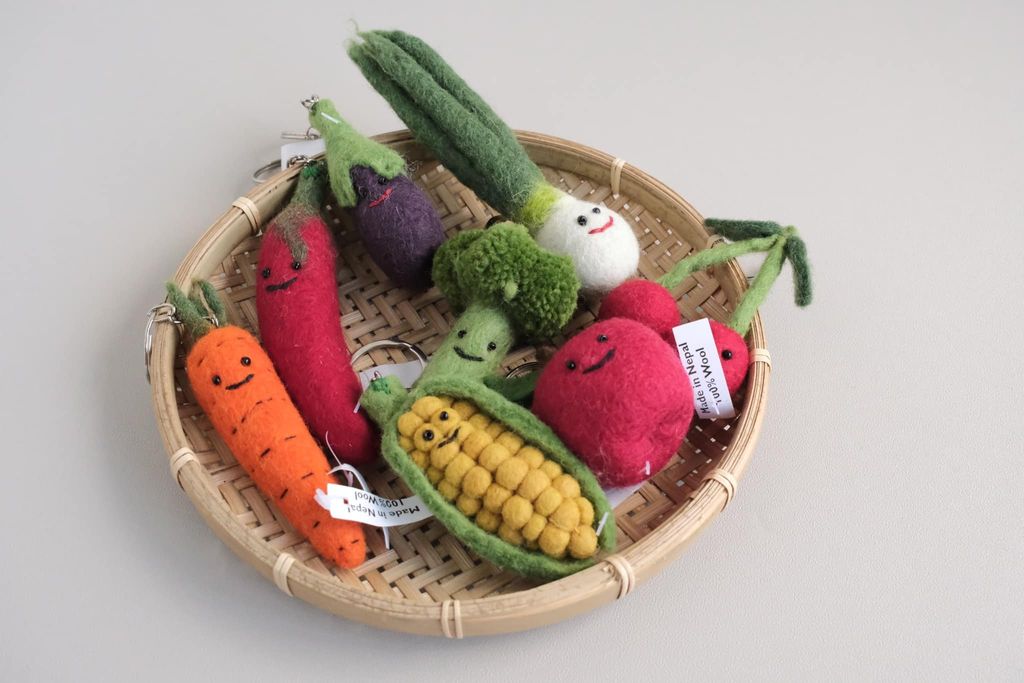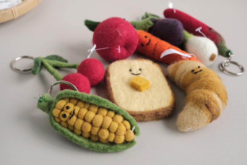 尼泊爾手工製羊毛氈蔬果麵包鑰匙圈