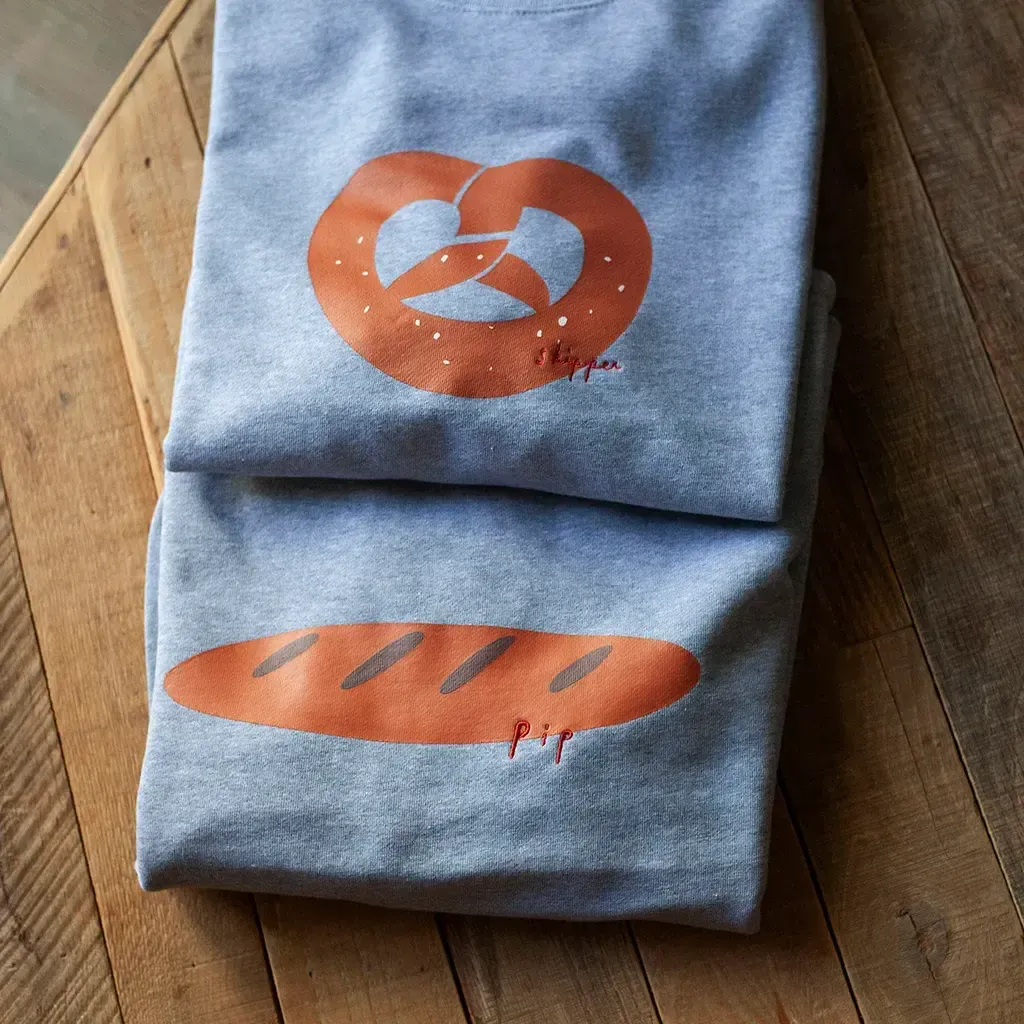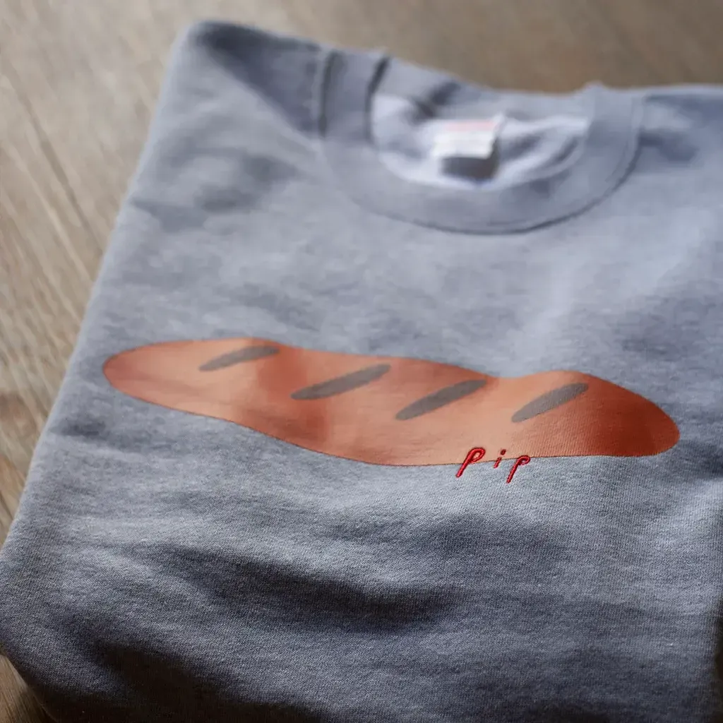 法棍款上有 Pip 的刺繡簽名,背面領口縫製了 Pip 的照片;