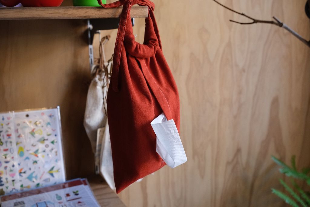 這款「捲捲面紙套」的誕生,其實是因為家裡的小孩超~愛抽衛生紙,為了節省一點,我改用小包抽取式,但市面上能裝小包的面紙套選擇性確不多。後來在日本展售會上找到靈感,回來後重新設計成這款可「捲式」也可「吊掛」的版本。