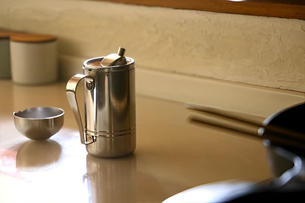 來自日本新潟縣燕市、專注於不鏽鋼加工的一菱金屬,打造出了一款兼具功能性與美感的「一菱金屬日本製油壺」。