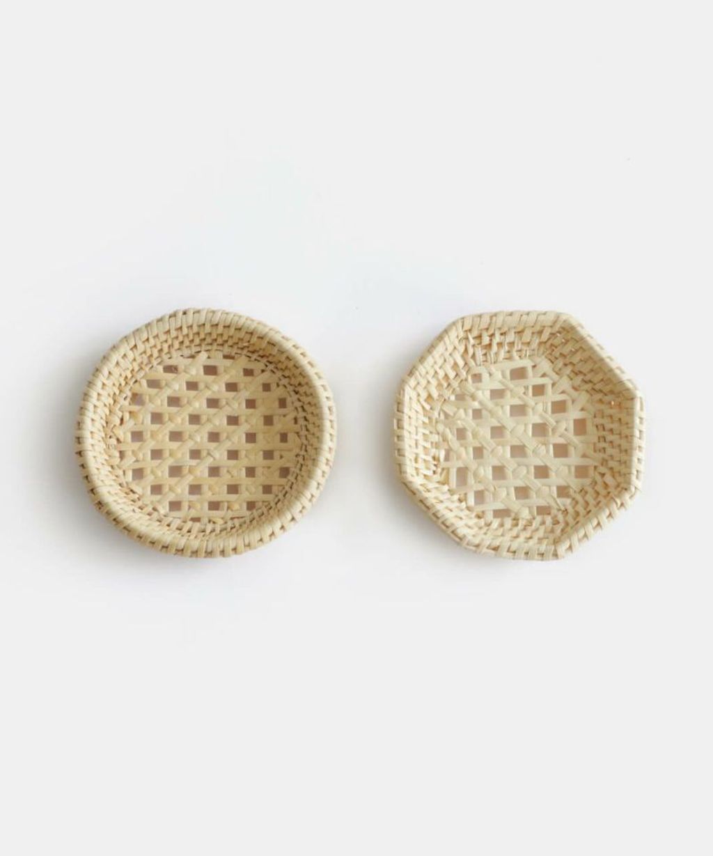 精美、精心編織的藤製茶杯盤,也可用於放置小點心喔。