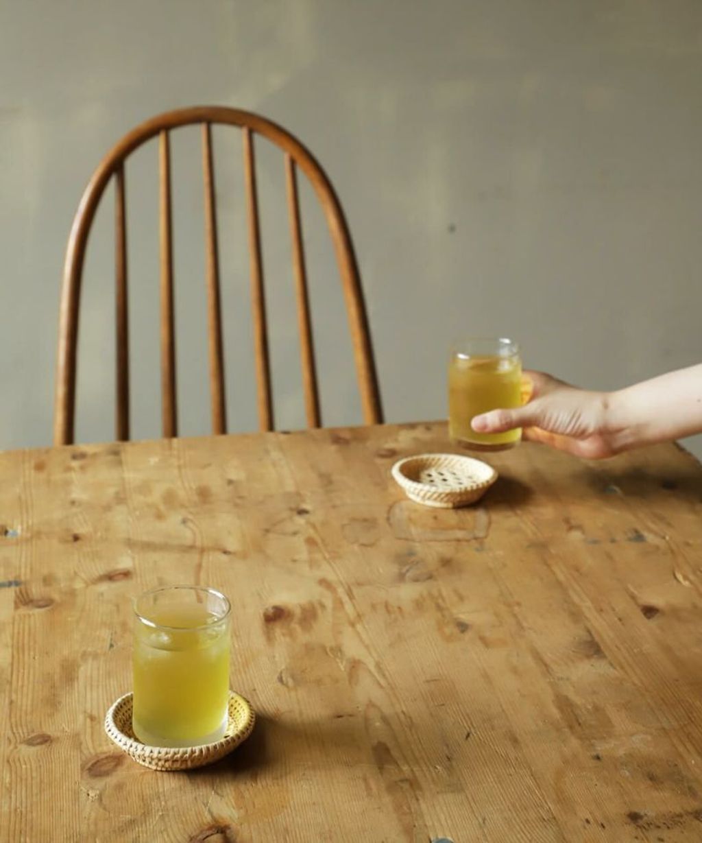 每一件茶托都由工匠以三維方式編織,藤是非常優良的天然材料,它輕、柔韌、柔軟,而且堅固且耐水,因此可以用水清洗。(清洗後請充分晾乾)堅固的結構深入每一個細節。日式和西式風格的兩種高設計品質。不僅可以搭配冷綠茶使用,還可以加一杯咖啡或冰茶,招待客人的時候也是很棒點綴氛圍的小道具,圓形帶點可愛,八角形略帶點個性,自然樸實的素材擺在家中角落真的百看不膩。