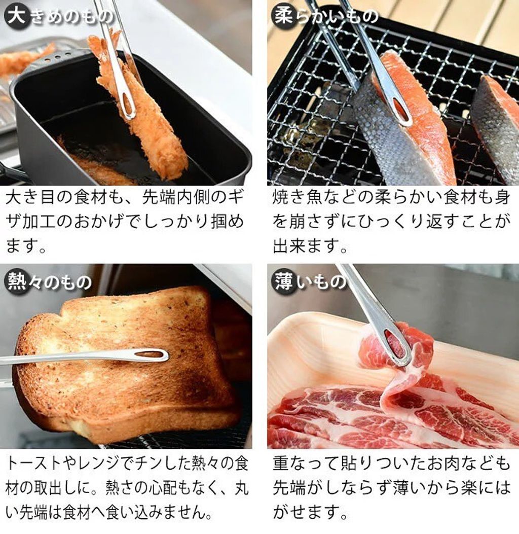 不要小看這個不銹鋼料理夾,獨特設計可是獲得日本煮婦們一致好評,尤其是細小超薄或是滑溜溜的食材都能輕鬆毫不費力的夾取。