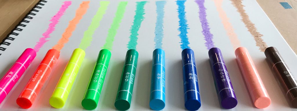 水彩感的蠟筆,是透明像果凍般的顏色,筆觸非常滑順可以容易畫出可愛的透明系色彩,可以堆疊重疊著色,畫出暈染效果。