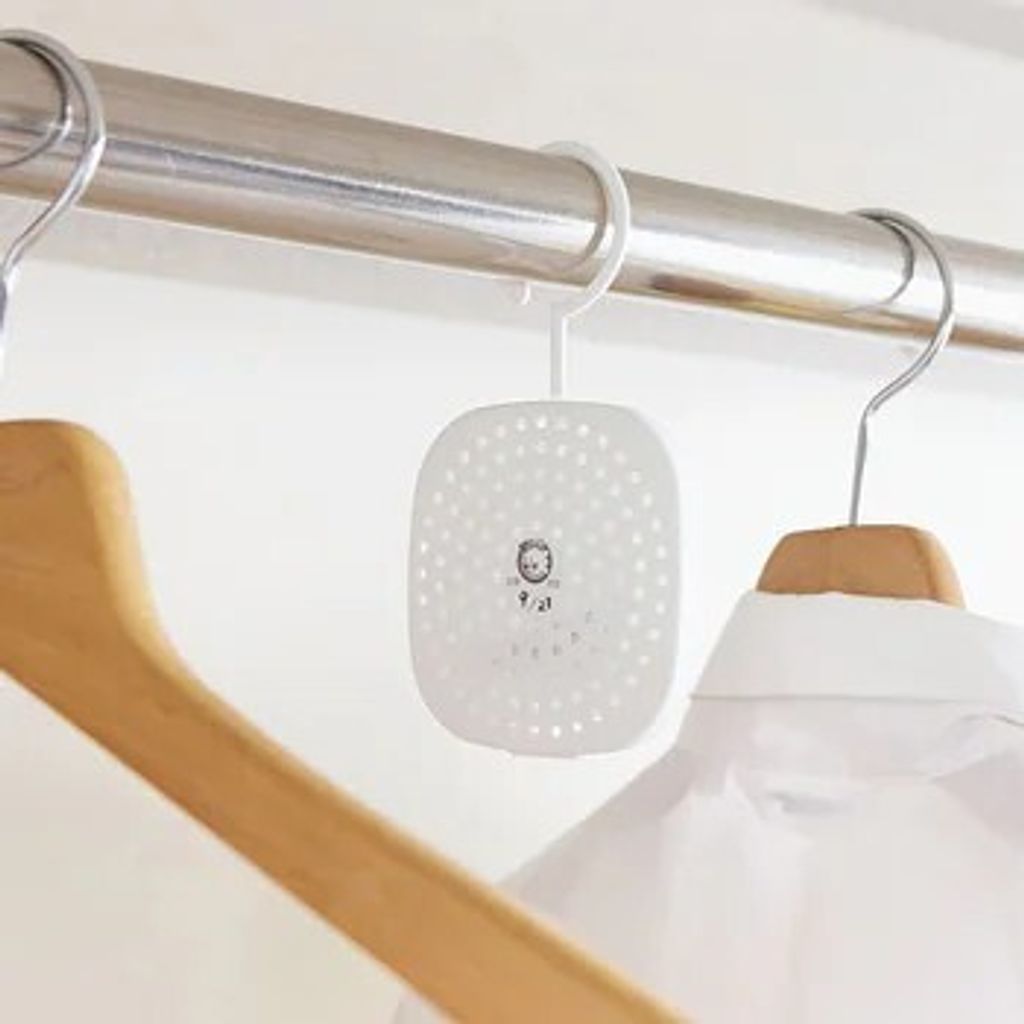 可以直接貼在衣櫃的最上層,就能抑制黴菌,也能直接掛在壁櫥櫃中使用,一個約使用四個月(內附貼紙可以寫上更換日期是不是很貼心。)